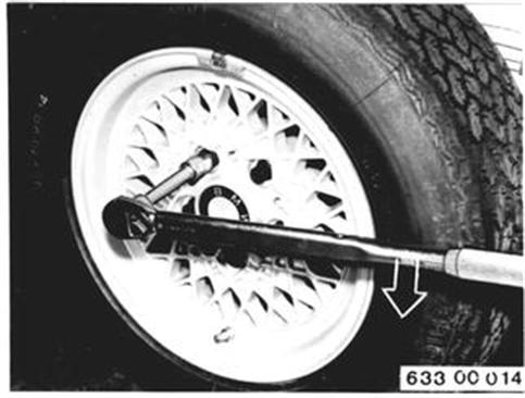 Festsitz der Radschrauben prüfen Radschrauben mit Drehmomentschlüssel auf Festsitz kontrollieren. Bei Leichtmetallfelgen: Mittenzentrierung mit hochtemperaturbest. Fett bzw. Gleit- oder Korrosionsschutzmittel beschichten. Anziehdrehmoment¹) ¹) Siehe technische Daten Gruppe 36