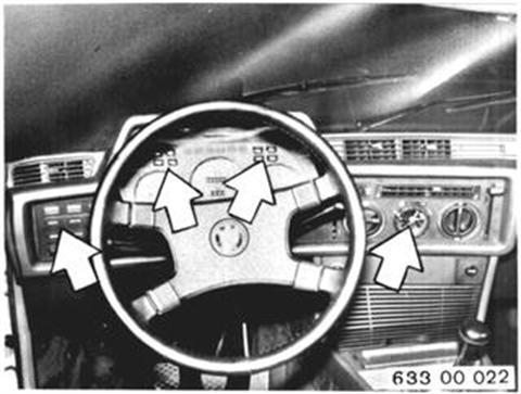 Elektrische Anlage auf Funktion prüfen Heizgebläse, Warn- und Kontrolleuchten, Instrumentenbeleuchtung, Zigarettenanzünder, Innenleuchte, Handschuhkastenleuchte, Gepäckraum- und Motorraumleuchte auf Funktion prüfen. Heizbar Heckscheibe auf Funktion prüfen. | ![]() |
