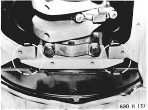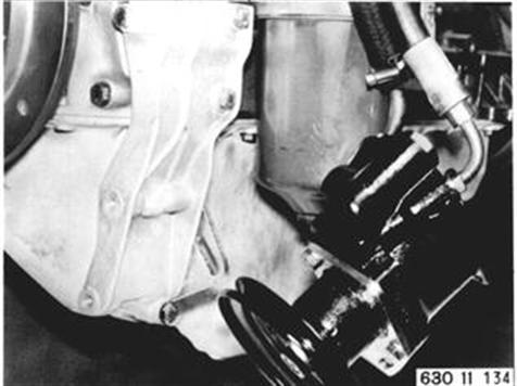 Fahrzeuge nach Modellwechsel 1982 Motoröl ablasen. Drehstromgenerator ausbauen 12 31 020. Flügelpumpe ausbauen 32 41 060. Schrauben lösen. 12 31 020 Siehe technische Daten