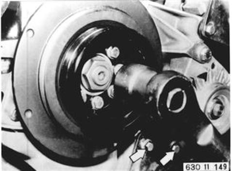 RADIALDICHTRING IM RÄDERKASTENDECKEL ERSETZEN Abdeckblech ausbauen. Schwungrad mit Vorrichtung 11 2 100 blockieren. Bei Automaticgetriebe 11 2 120 verwenden. | ![]() |