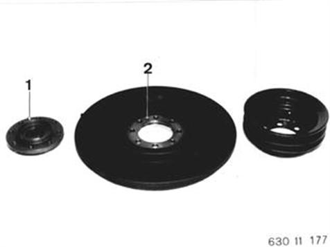 NABE FÜR SCHWINGUNGSDÄMPFER ERSETZEN Schwingungsdämpfer mit Nabe ausbauen 11 23 000. Riemenscheibe abbauen und Schwingungsdämpfer von Nabe abnehmen. Einbauhinweis: Zentrierstift (1) muß in die Bohrung (2) am Schwingungsdämpfer. 11 23 000