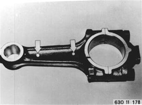 EINE PLEUELSTANGE ERSETZEN -KOLBEN ABGEBAUT- Achtung! Innerhalb eines Motors nur Pleuelstangen gleicher Gewichtsgruppe mit einer Gesamttoleranz von ± 4 g (ohne Lagerschalen) einbauen. Die Gewichtsgruppe ist an der Farbmarkierung ersichtlich. Sollte keine Farbmarkierung sichtbar sein, muß zum Gewichtsvergleich eine weitere Pleuelstange ausgebaut und gewogen werden. Achtung! Die Pleuelstange darf nicht nachgearbeitet werden. | ![]() |
