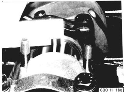 Pleuellagerschalen in dei Pleuelstange einbauen. Plastigage Type PG 1 auf ölfreien Kurbelwellenlagerzapfen legen. Pleuelstange an Kurbelwelle befestigen. Die Bearbeitungszahlen müssen sich auf derselben Seite befinden. Ölbohrung im Pleuelauge zeigt in Richtung Steuerkette. | ![]() |