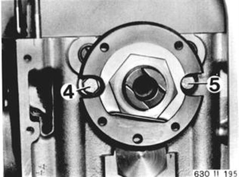 Schrauben (4 und 5) herausdrehen. Nockenwelle herausziehen. | ![]() |