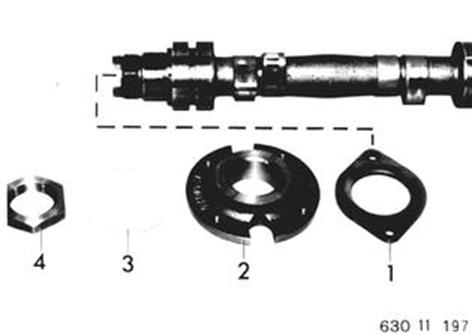 NOCKENWELLE ERSETZEN Nockenwelle ausbauen 11 31 000. Flansch für Kettenrad umbauen. Führungsblech (1), Flansch (2), Sicherungsblech (3), Mutter (4). 11 31 000