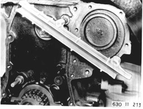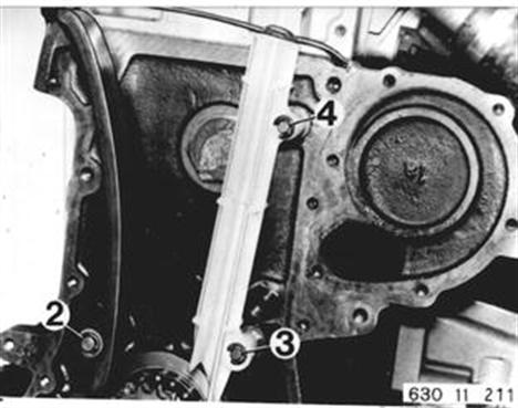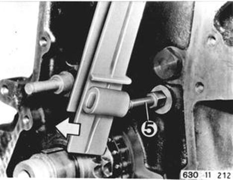 Sicherungsscheiben (2 ... 4) ausbauen. Zylinderkopfdichtung leicht nach oben biegen und Spannschiene abziehen. | ![]() |