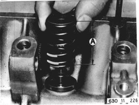 Federteller und Feder abnehmen. Einbauhinweis: A Federlänge¹) ungespannt. Achtung! Ventilfeder ist progressiv gewickelt. Seite mit der engen Windung - Farbmarkierung - zeigt zum Zylinderkopf. Ventil herausziehen. Einbauhinweis: Ventilführung und Ventilschaft einölen. ¹) Siehe technische Daten