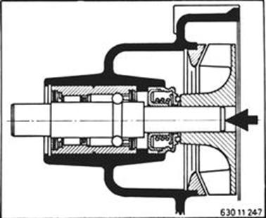 Wasserpumpenlager bis zum Festsitz einpressen.