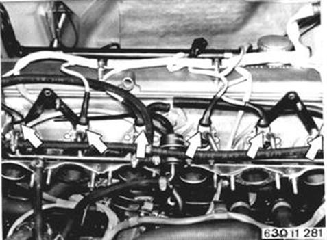 Stecker von den Einspritzventilen 1 ... 6 abziehen. Einspritzventile ausbauen. | ![]() |