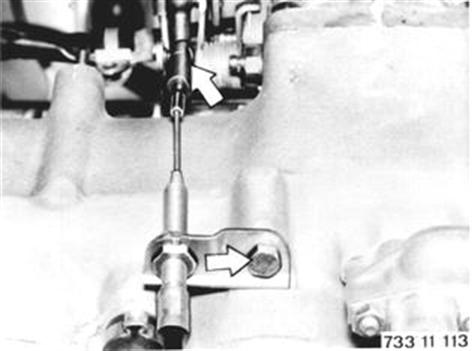 Bei Ausführung mit Automaticgetriebe: Gaskabelzug aushängen und Halter am Sammler lösen. | ![]() |