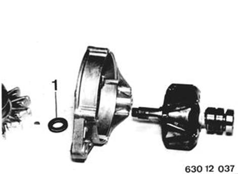 LÄUFER ERSETZEN Regler, Riemenscheibe, Lüfterrad und Lagerschild abbauen. Läufer aus Lagerschild herausdrücken. Einbauhinweis: Bund der Scheibe (1) zweigt zum Rillenlager.