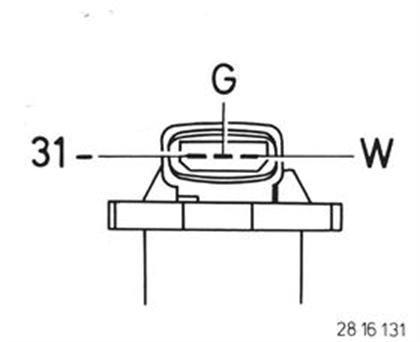 Warnkontakt an Klemme W und 31 (Masse) prüfen. Bei Schwimmerstellung "LEER" zeigt das Ohmmeter Durchgang (ca. 0,1 Ohm) an.