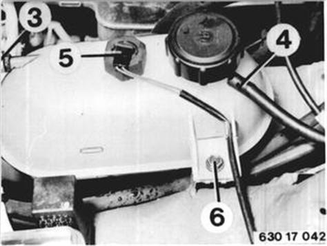 Schlauch (3 und 4) abbauen. Stecker (5) abziehen und Schraube (6) herausdrehen. | ![]() |