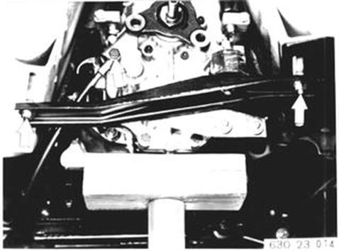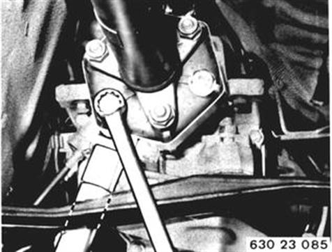 Tachowelle lösen. Getriebe abstützen. Querträger ausbauen. Getriebe bis zum Vorderachsträger ablassen. |  |