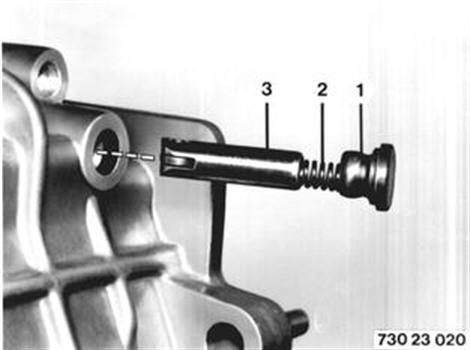 Deckel (1) ausheben. Feder (2) und Arretierbolzen (3) herausnehmen. | ![]() |
