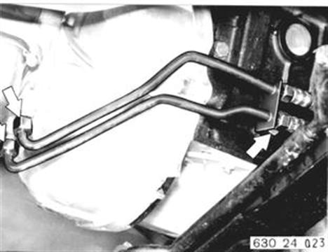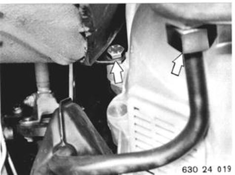 Ölkühlerleitungen vom Getriebe lösen. Schraube am Motor herausdrehen. | ![]() |