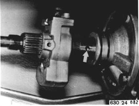 Sicherungsblech ausheben. Einbauhinweis: Sicherungsblech in der Abtriebsflanschnut verstemmen. | |