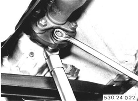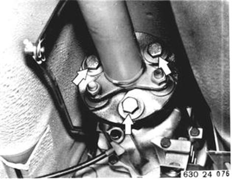 Fahrzeuge vor Modellwechsel 1982 RADIALDICHTRING FÜR ABTRIEBSFLANSCH ERSETZEN Auspuffanlage kpl. ausbauen 18 00 020. Gelenkscheibe vom Getriebe lösen. 18 00 020
