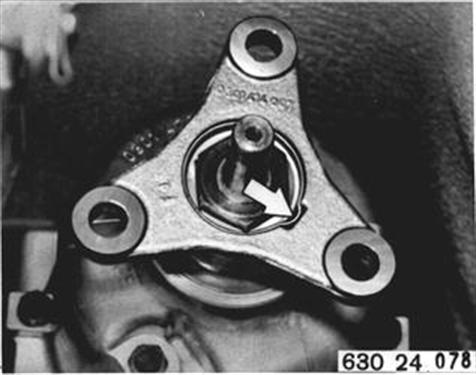 Sicherungsblech ausheben. Einbauhinweis: Sicherungsblech in der Abtriebsflanschnut verstemmen. | ![]() |