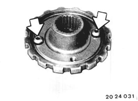 Fahrzeuge nach Modellwechsel 1982 FLIEHKRAFTREGLER AUS- UND EINBAUEN Getriebeverlängerung ausbauen siehe 24 11 052. Parksperrenrad mit Fliehkraftregler abziehen. 24 11 052