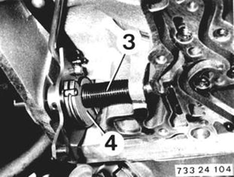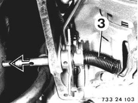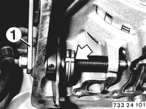 Fahrzeuge nach Modellwechsel 1982  SCHENKELFEDER FÜR GASKABELZUG ERSETZEN Schaltgerät ausbauen 24 30 002 Wählhebel (1) vom Getriebe abbauen. Gaskabelzug aushängen.  24 30 002 |  |