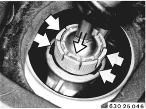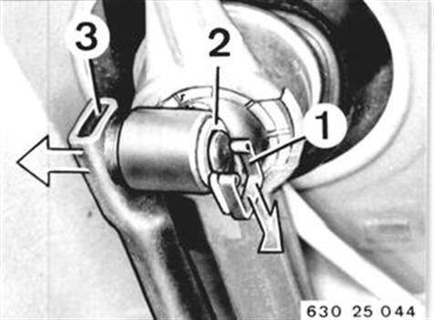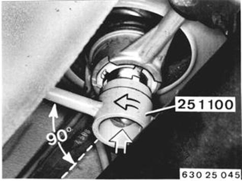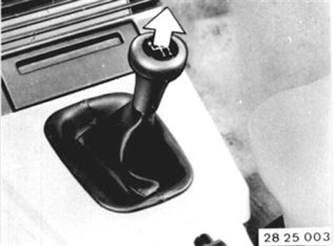 Zapfenschlüssel 25 1 100 ansetzen. 90° entgegen den Uhrzeigersinn drehen. Kugelschale nach oben drücken. Schalthebel von oben herausnehmen.