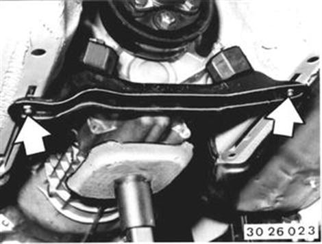 Fahrzeuge nach Modellwechsel 1982  KONSOLE FÜR SCHALTHEBELAGERUNG AUS- UND EINBAUEN - Schaltkonsole aus Aluminium - Gelenkwelle am Schaltgetriebe abbauen, siehe 26 11 000. Schalthebel ausbauen 25 11 000. Getriebe abstützen. Querträger abschrauben. Getriebe bis zum Vorderachsträger ablassen.  26 11 000  25 11 000 |  |