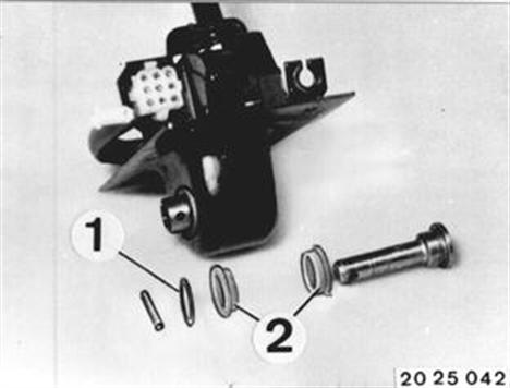 Fahrzeuge nach Modellwechsel 1982  SCHALTHEBEL AUS- UND EINBAUEN Schalthebel mit Lagerbock kompl. ausbauen 25 16 050. Spannstift austreiben.  25 16 050 |  |
