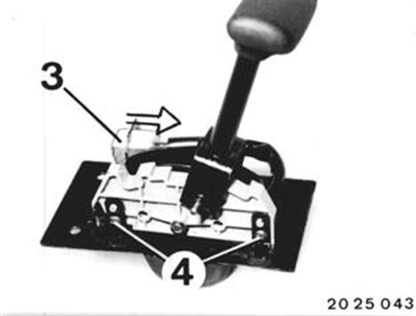 Schaltkulisse vom Getriebeschalter abbauen. Einbauhinweis: Darauf achten, daß die Bolzen am Getriebeschalter in die Bohrungen der Schaltkulisse einrasten. |  |