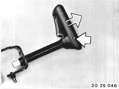 Schraube am Griff lösen. Griff abziehen. Einbauhinweis: Lage des Griffes zum Schalthebel beachten. |  |