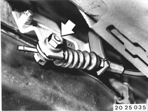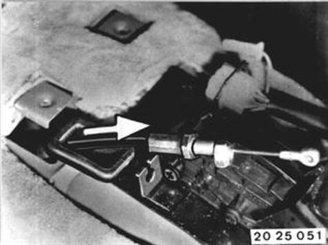 Fahrzeuge nach Modellwechsel 1982  SEILZUG FÜR GANGWÄHLHEBEL ERSETZEN Ablagefach aus- und einbauen 51 16 200. Mutter lockern. Achtung! Stahldraht nicht verbiegen.  51 16 200 |  |