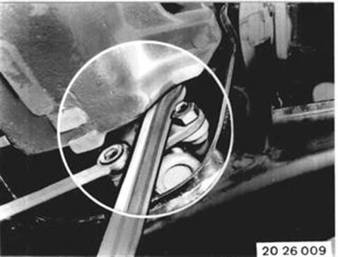 Ausführung mit Gelenkscheibe oder ------------------------------------------------------------------ Kreuzgelenk vorn: ---------------------------- Schraubbüchse mit Werkzeug 26 1 040 einige Umdrehungen lösen. Einbauhinweis: Nach erfolgtem Einbau Schraubbüchse mit Werkzeug 26 1 040 anziehen. Anziehdrehmoment*) beachten.  *) Siehe Technische Daten |  |