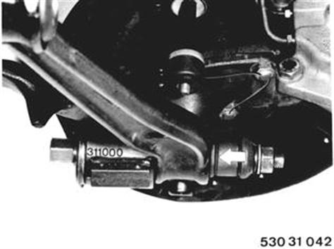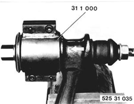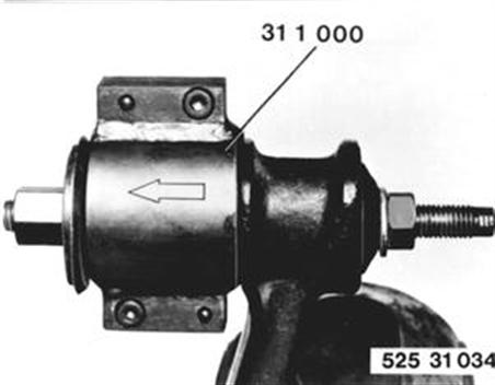 Aus- und Einziehvorrichtung 31 1 000 anbauen. Gummilager einziehen. Einbauhinweis: Gummilager mit Cresta verdünnt, Einschiebeöl II oder entspanntem Wasser bestreichen. |  |