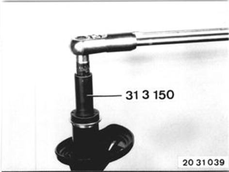 Federbeinstoßdämpfer kpl. aus- und einbauen 31 31 000. Federbein mit Vorrichtung 31 3 000 in Schraubstock oder Montagebock aufnehmen. Schraubenfeder mit Federspanner 31 3 111 zusammendrücken. 31 31 000