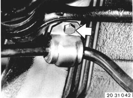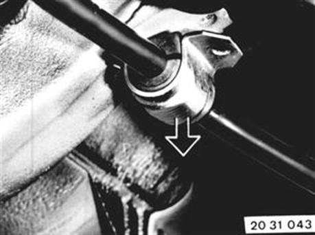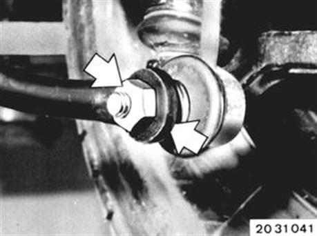 Fahrzeuge nach Modellwechsel 1982  STABILIATOR AUS- UND EINBAUEN Druckstangen links und rechts abbauen. Kugelgelenk mit Gabelschlüssel gegenhalten. Einbauhinweis: Anziehdrehmoment*).  *) Siehe Technische Daten Gr. 31 |  |