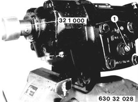 Axialspiel¹) der Nachstellschraube prüfen, ggf. durch stärkere Scheibe (1) korrigieren. Nachstellschraube muß sich ohne klemmen drehen lassen. |  |
