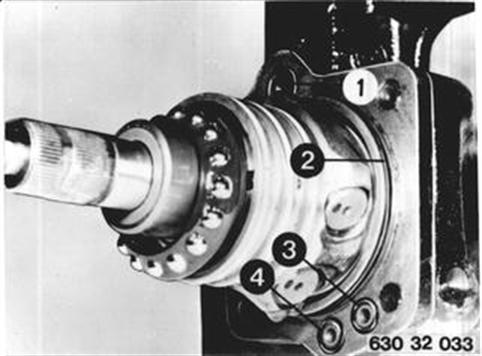 Kugellager abnehmen. Einbauhinweis: Dichtringe (1 ... 4) überprüfen, ggf. ersetzen. |  |