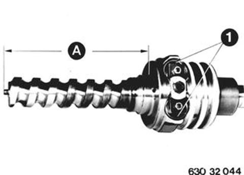 Kolben und Schnecke: Achtung! Die Ventilkolben (1) dürfen nicht ausgebaut werden. Nach einer Demontage würde die hydraulische Mitte, die über die Lenkspindel und den Drehstab genau eingestellt ist, nicht mehr stimmen. Einstellmaß für Lenkbegrenzungsventil prüfen. A = 107 - 0,20 mm |  |