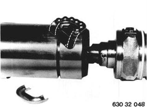 Segmentwelle: Segmentwelle in Mittelstellung herausziehen. Einbauhinweis: Kerbverzahnung mit Heißlagerfett füllen. Segmentwelle vorsichtig einführen, damit Radialdichtringe nicht beschädigt werden. |  |