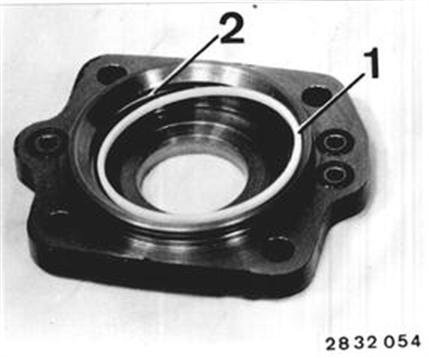 Dichtring (1) und darunterliegenden O-Ring (2) erneuern. Dichtring mit Hydraulikflüssigkeit*) bestreichen. *) Siehe Service-Information Gr. 00 | ![]() |