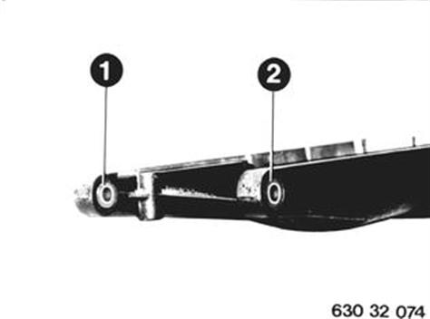 Gummilager (1 ... 2) herausdrücken. Einbauhinweis: Gummilager mit Poliglykol oder Glycerin bestreichen. |  |