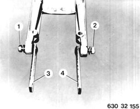Muttern (1 ... 2) lösen und Hebel (3 ... 4) mit Scheiben abnehmen. Einbauhinweis: Selbstsichernde Muttern erneuern. Anziehdrehmoment¹).  ¹) Siehe technische Daten |  |
