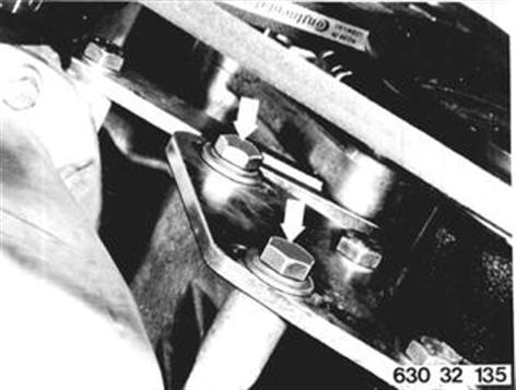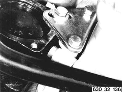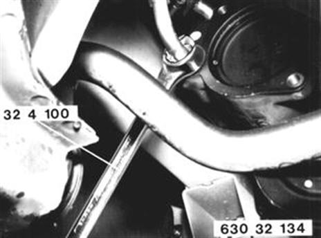 Fahrzeuge vor Modellwechsel 1982  FLÜGELPUMPE AUS- UND EINBAUEN Schläuche mit Ringschlüssel 32 4 100 von der Hochdruckpumpe lösen. Achtung! Das auslaufende ATF-Öl nicht mehr verwenden. Achtung! Einbauhinweis: Hochdruckschlauch so befestigen, daß ein Scheuern am Motorträger nicht möglich ist. Anziehdrehmoment¹). Hydrauliksystem entlüften 32 13 006.  ¹) Siehe technische Daten  32 13 006 |  |