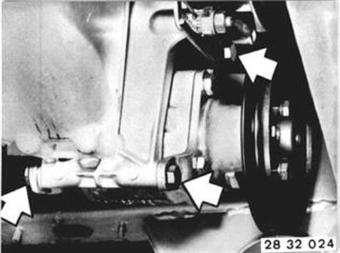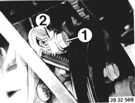 Fahrzeuge nach Modellwechsel 1982 KEILRIEMEN FÜR HYDROFLÜGELPUMPE SPANNEN Unterschutz abbauen. Schrauben lockern.