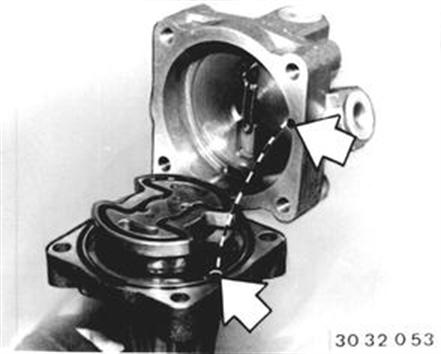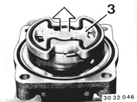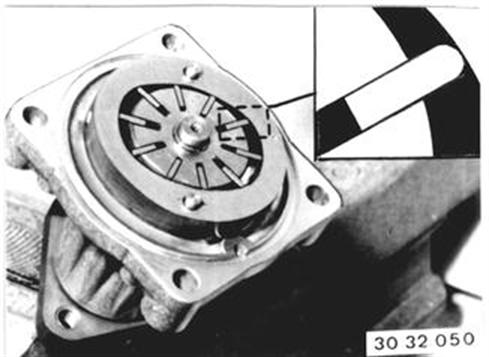 Fahrzeuge nach Modellwechsel 1982 FLÜGELPUMPE ZERLEGEN UND ZUSAMMENBAUEN Flügelpumpe Kenn-Nr. 7681 955... Bei der Montage der Flügelpumpe ist auf äußerste Sauberkeit zu achten.