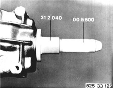 Wellendichtring in HA-Getriebeöl tauchen und mit Schlagbüchse 31 2 040 in Verbindung mit Griff 00 5 500 bündig einschlagen. |  |