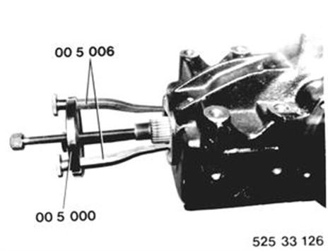 Wellendichtring mit Auszieher 00 5 000 in Verbindung mit neuen Klauen 00 5 006 ausziehen. |  |