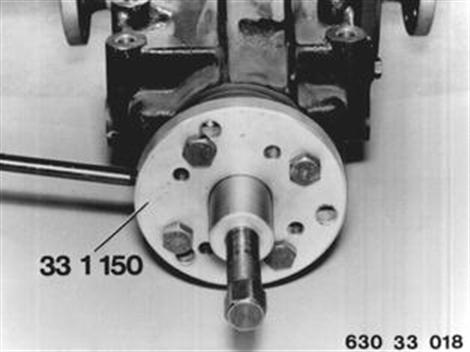 Antriebsflansch mit Abzieher 33 1 150 abziehen. Lauffläche des Wellendichtringes am Antriebsflansch überprüfen. Bei stark eingelaufener Lauffläche Antriebsflansch ersetzen. |  |