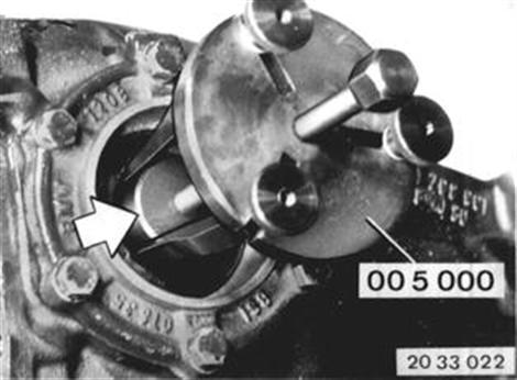 Wellendichtring mit Auszieher 00 5 000 bzw. 00 5 010 in Verbindung mit Druckstück ausziehen. | ![]() |
