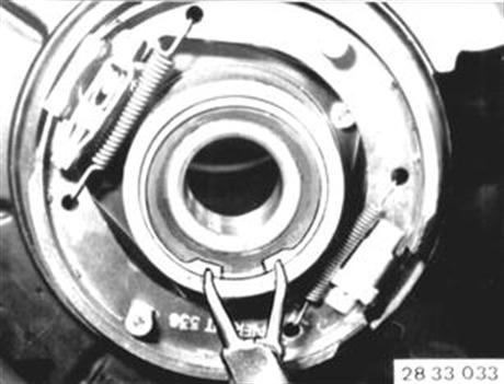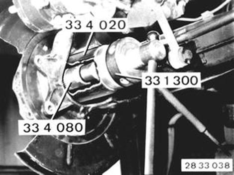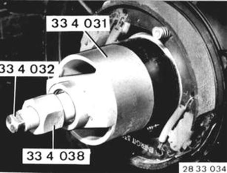 Radlager kompl. mit Werkzeug 33 4 036 in Verbindung mit Gewindespindel 33 4 032 und Mutter 33 4 038 einziehen.